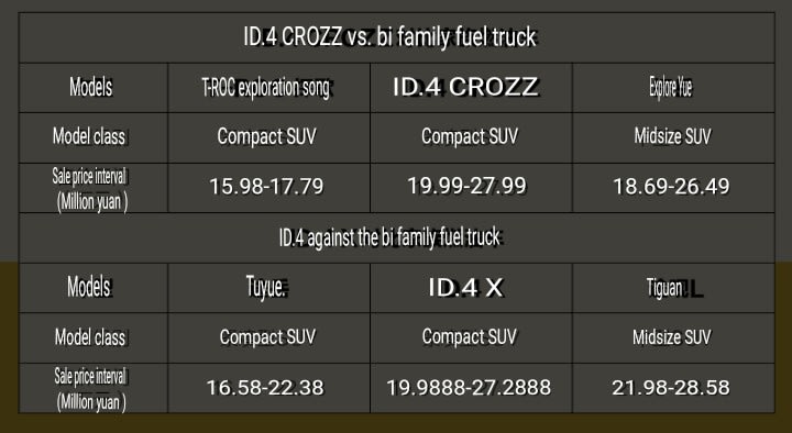 In addition to being interested in the vehicle itself, the price of the North and South Volkswagen ID.4 is also the focus of many people's attention. From the table below, we can see the sales of ID.4 CROZZ and ID.4 X and their own fuel SUV models. Compared with the price range, from the perspective of pricing, ID.4 from the MEB platform has been able to achieve the same price as fuel vehicles at the same price, and cost control is very ideal.