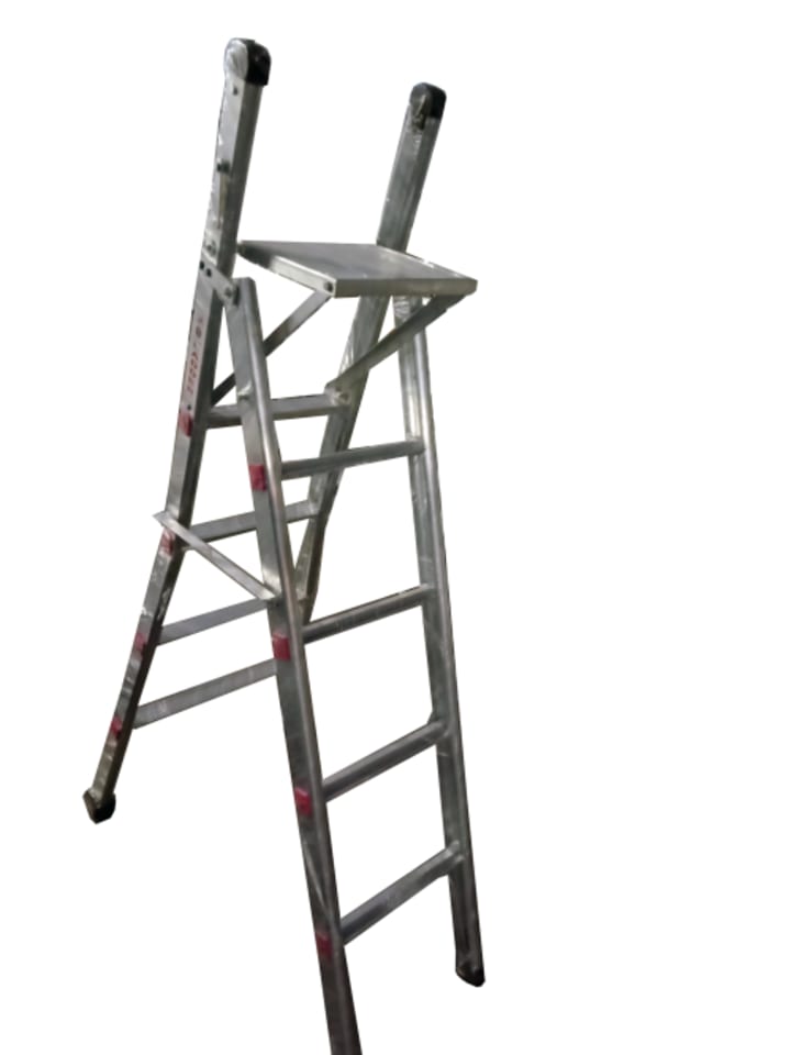 A straight cum stool ladder is a simple, vertical ladder with no additional support or bend. It is designed with evenly spaced rungs and is commonly used for reaching heights and accessing elevated areas.