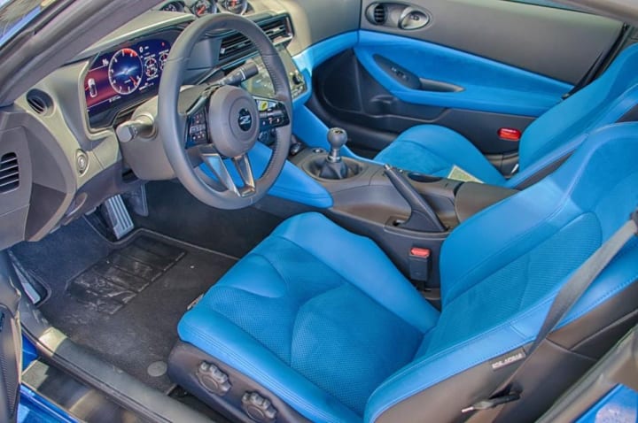 The cockpit of the Z is a huge step up from the 370Z. The materials feel significantly more premium than before. The example I drove had a two-tone interior with black and a blue that matches the gorgeous Serian Blue exterior. The cabin is also offered with red/black or all black. The limited edition Z Proto Speck gets yellow interior accents to go with the yellow exterior first seen on the Z Proto concept in 2020.