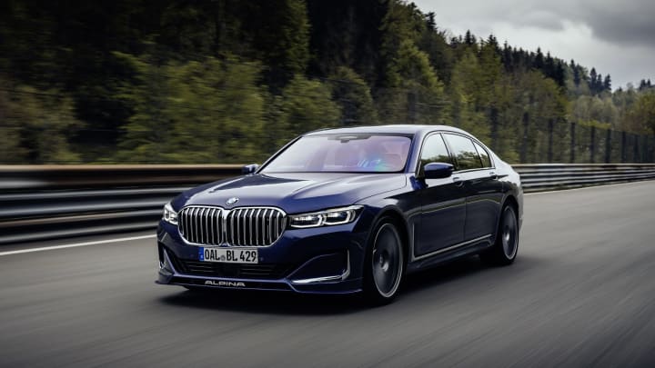 The 2021 BMW Alpina B7 is a high-performance version of the large luxury sedan of the BMW 7 Series. Underneath its hood is a 4.4-liter V8 engine with a turbocharger that produces 600hp and 590lbft of torque. Power is sent to all four wheels via an 8-speed automatic transmission.The stunning design of the new BMW ALPINA B7 strikes a balance between luxurious elegance and dynamism. The front, characterized by the rigorous BMW grille and subtle free-floating ALPINA lettering, and the rear, with its polished stainless steel exhaust pipes and diffuser, emphasize the car's breathtaking performance potential.