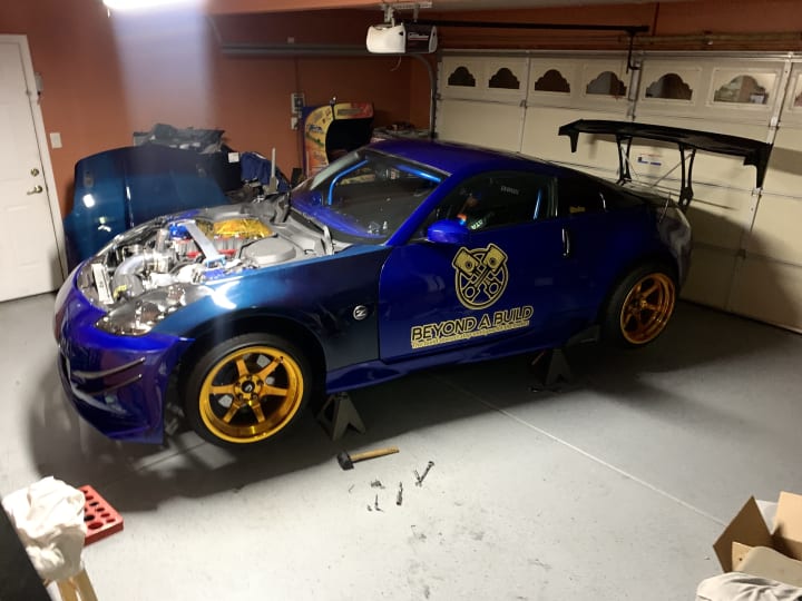 After graduating nursing school, I told my best friend Donato Cruz that I had a lot of plans for the Z and wanted to build her. We had worked on previous builds together and I can say he is a mechanical genius. We started taking Sally more serious in the Summer of 2015 and have going working on her non-stop. It started with bodywork, bagging her, and then wheels done all in my garage. We moved forward then had everything I could polish on the VQ and added all the bolt ons that were not only functional, but also gave performance gains. Even after doing all the work we had done, I still wasn't fully satisfied. I wanted more power.