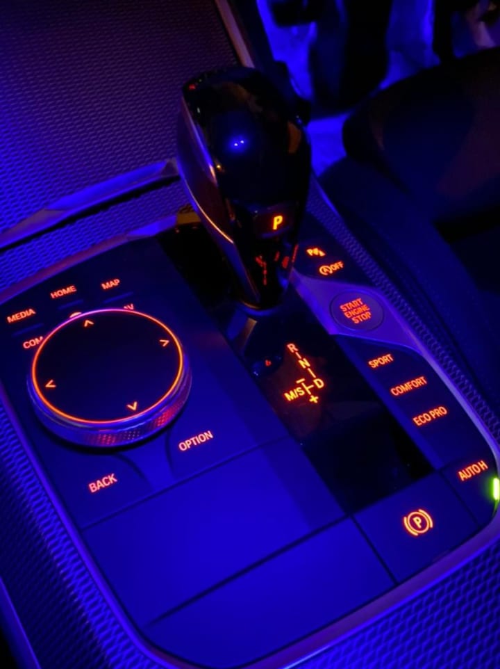 The all new M340i has achieved balance between luxury and sportiness. The interior is themed all black with the seats wrapped in a Alcantara-sensatec leather upholstery along with blue stitching across the car. The ambient lighting is available in 6 different colors along with aluminum trim on the dashboard.