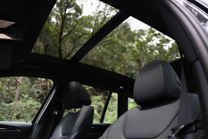 Leather upholstery, a Harman Kardon 16-speaker audio system and a full length glass roof also feature. Inside it’s a normal, very well equipped X3. There’s a fully digital instrument cluster, accompanied by a 12.3-inch infotainment display in the centre dash.