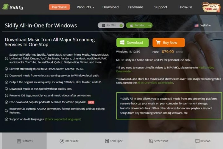 Sidify All-In-One Converter is a powerful music converter that allows you to easily download playlists from different platforms, including SoundCloud, Spotify, Apple Music, Amazon Prime Music, YouTube Music, etc. This software supports outputting original sound quality, including 320kbps, HiFi, Master, and HD. It can also download popular podcasts and radio for free for offline playback.