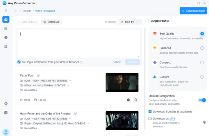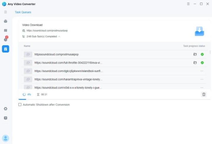 The download tool in Any Video Converter allows you to directly download SoundCloud playlist to MP3 for free. The playlist on SoundCloud usually contains many songs, and Any Video Converter can batch download all the songs in the playlist at once and convert them all to MP3 format, avoiding you from manually downloading each song repeatedly. It saves your time and improves download efficiency so that you can listen to your favorite songs anytime and anywhere. During the download process, Any Video Converter can maintain the original audio quality, ensuring that the MP3 files sound just like the online streaming version.