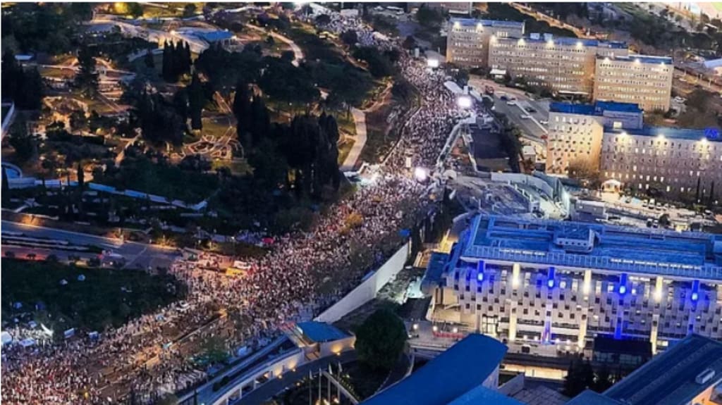 Israel's political divisions are eventually uncovered. The Israelis were hit hard by the Hamas attack on October 7 last year, and public fortitude emerged in the country, which had for a long time hid away the divisions. Yet again regardless, under a half year sometime later, a colossal number of dissidents rampaged of Israel.
