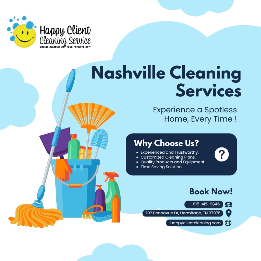 Scheduling cleaning services in Nashville with Happy Client Cleaning Service is simple. Homeowners and businesses can contact the team to create a customized cleaning plan that fits their needs and budget.