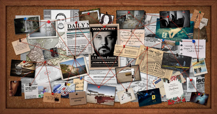 “Raven-Wolf” is assembling the murder board, showcasing “Luna, {Spirit-Walker},” and presenting the urgent letter written by “Hades.”