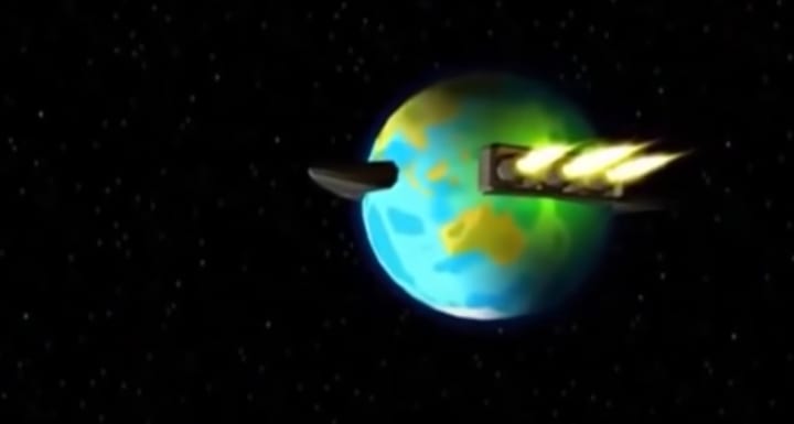 Maybe, however, it’s because of the flaws that the idea has stuck with me. I’ve always thought a lot more could’ve been done with it, but The End of Time is a massive episode trying to juggle a lot of things. In Part 2, The Master talks about turning Earth into a ‘warship’ (and I have to stop and draw attention to the Futurama video game’s Earth Ship here haha).