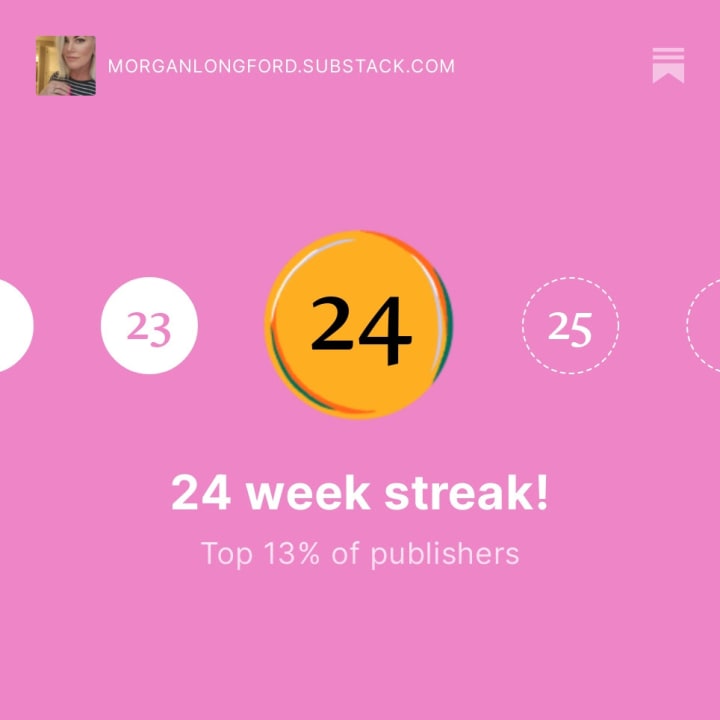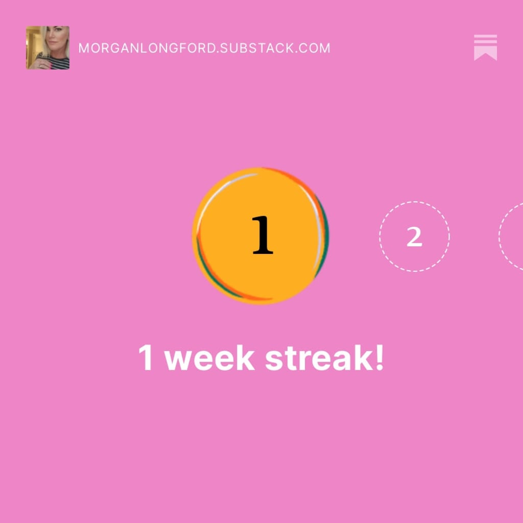 Somehow, between weeks 24 and 26, I missed a deadline or something because even though I published a piece every week- whether it was a poem, an essay, a chapter from my book, or just a little blurb- I got an email saying congratulations on your ONE WEEK STREAK.
