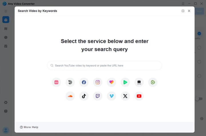 Any Video Converter supports built-in browser and directly downloading YouTube to FLAC format. You just need to click the "magnifier icon" to unlock the built-in Facebook browser and keyword search.