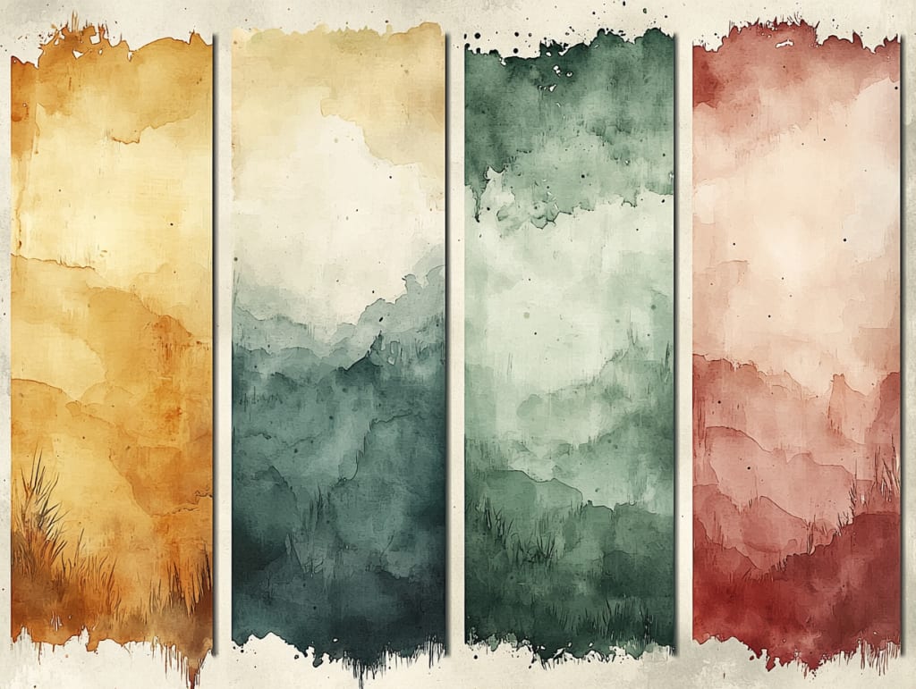 I turned back to the painting and placed it against the stack of finished pieces on my desk. Four in total. Each one in different tones—warm amber, cool greens, deep reds, and misty blues. They belonged together, each telling a different part of the same quiet story. I had spent days layering colour, pulling pigment across wet surfaces, waiting for the paper to absorb just enough before adding another stroke.