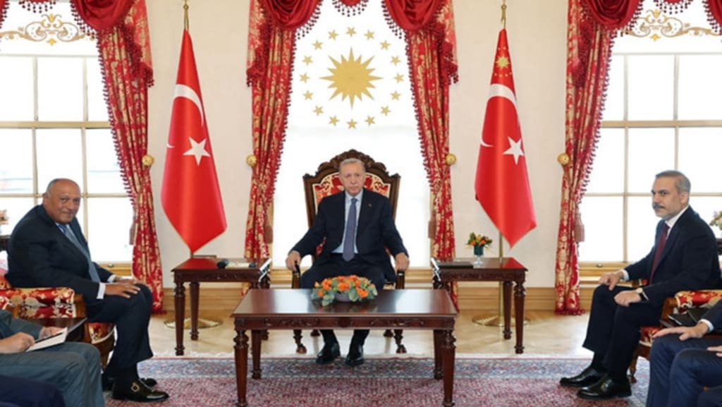 The Turkish unfamiliar clergyman said he and Egypt's unfamiliar pastor talked about endeavors to get more alleviation help to Gaza. Shoukry said in a public interview that a designation from Turkey will visit Egypt soon to decide and set up the conceivable date for the visit of Egyptian President Abdel Fattah al-Sisi to Turkey.