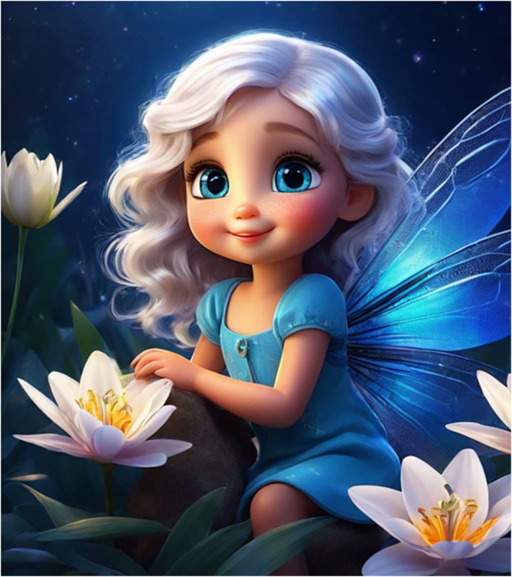 Glimmer, a petite dragonfly with iridescent wings and shimmering silver hair, flitted about Lily's head, her bright blue eyes sparkling with curiosity. "Welcome, little one!" Glimmer chimed, her voice like the tinkling of a tiny bell. "I've been waiting for you. My friend Bruno and I need your help on a most urgent quest."
