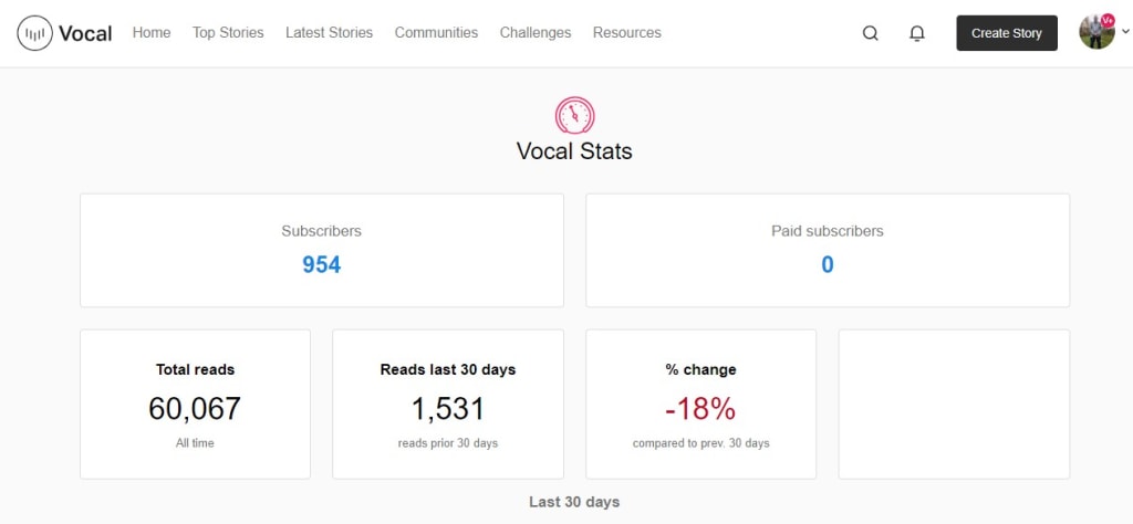 As I have said before I am nothing special, but I do post a lot of stories on Vocal, and today finished compiling my latest poetry anthology, so I put in quite a lot of hard work. If you divide 60,067 by 2,570 you see that I only average 23 reads per story, which is not very much, but I do have a lot of unread stories and seventy with over a hundred reads, and my top ten have over three hundred reads each, with the top one hitting 1,484.