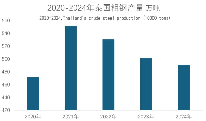 Thailand's steel industry has been impacted by the entry of Chinese steel companies into the ASEAN market in the past decade, resulting in the continuous reduction of the production scale of local companies. In 2024, Thailand's steel production capacity utilization rate will be only 29%, reflecting the severe situation of the industry.