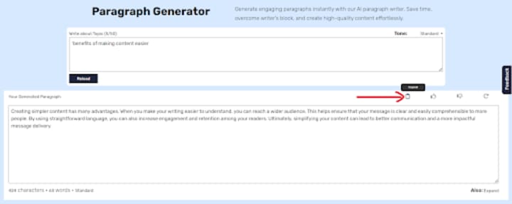 - The paragraph generator only produces one paragraph at a time, which means you’ll need to reload the page for more. It would be better if they could add a feature to generate multiple paragraphs at once.