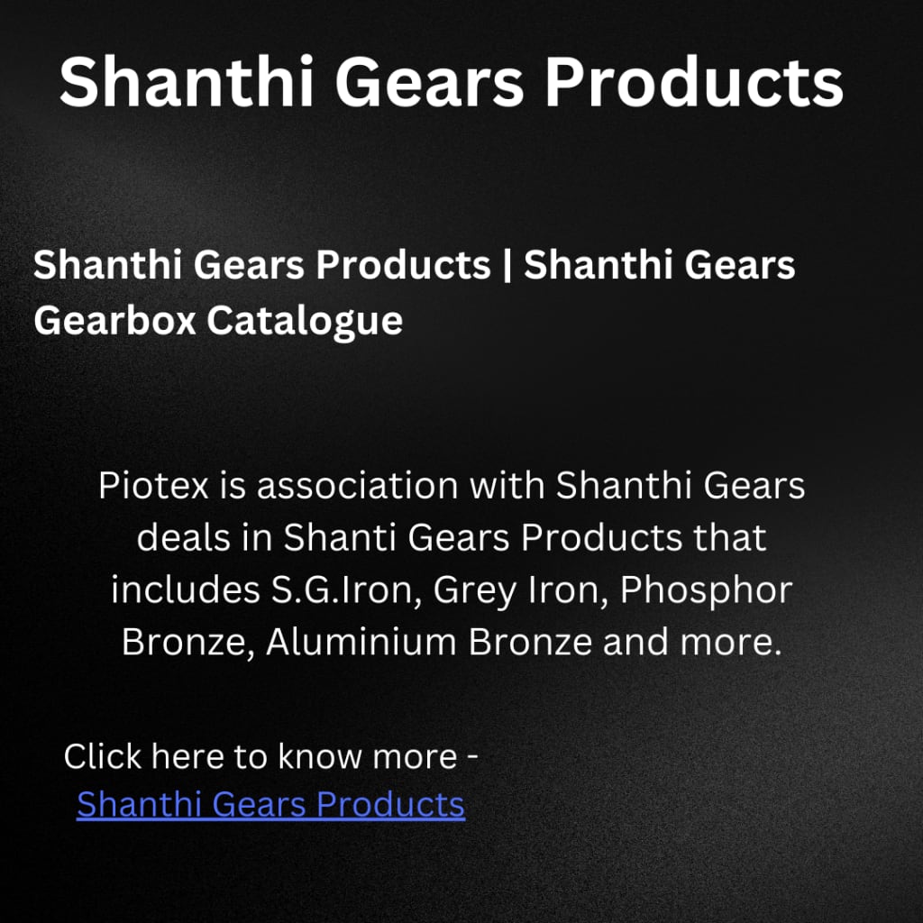 Piotex is association with Shanthi Gears deals in Shanti Gears Products that includes S.G.Iron, Grey Iron, Phosphor Bronze, Aluminium Bronze and more.