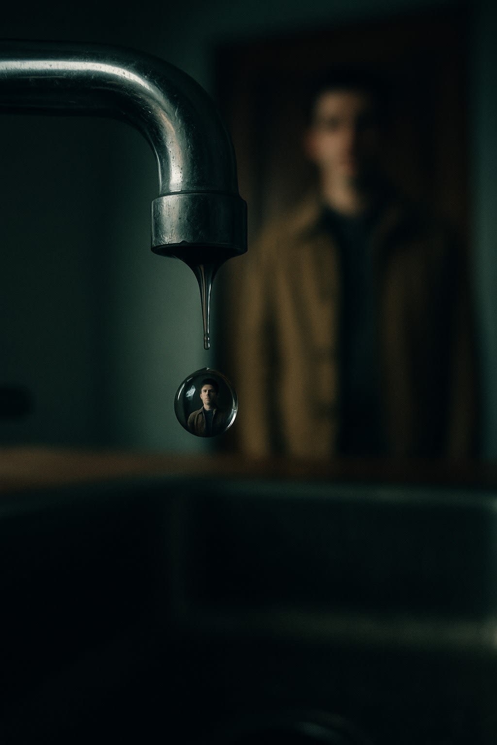 The sink has resumed its sermon. Drop. Drop. Drop. It wants me to believe that nothing has changed. It wants me to choose it or be chosen by it. I approach it like a penitent. I turn the handle a fraction and then another. The drip thins. Pauses. The pipes sigh, the way houses do when their ghosts settle back down.