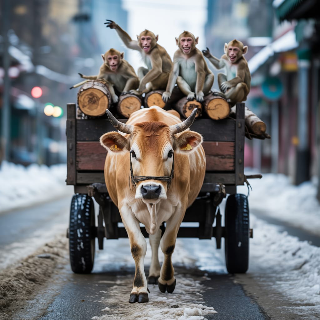 "The Hardworking Cow and the Carefree Monkeys"*