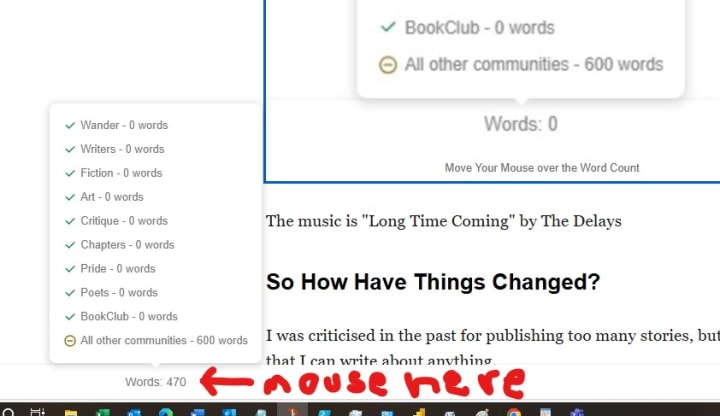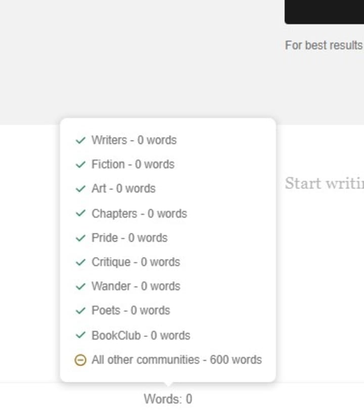 When I started on Vocal all communities had a minimum word requirement of six hundred words, apart from poetry, which required just a hundred words.