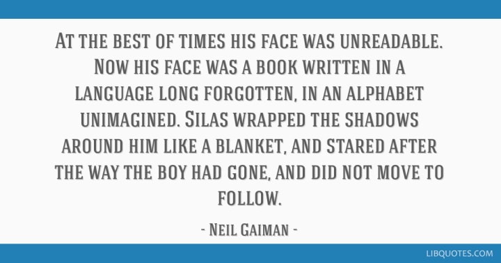 The phrase is used to explain that you can't know the characters emotions or feelings by looking at their face. A phrase used so much, readers doesn't really registrer it anymore. But taking a closer look at it drives them mad. Because if applied to anything else it will take a new meaning. If a book is unreadable, it's because it's so bad you can't stand it or so damaged the words doesn't make any sense, much like the dismantle phrase itself.