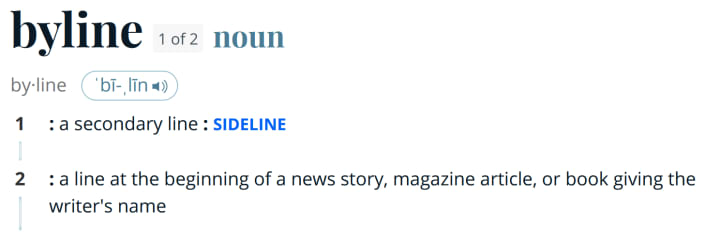 Slight problem: I do not actually know what a byline is. I'll look it up on Merriam-Webster.