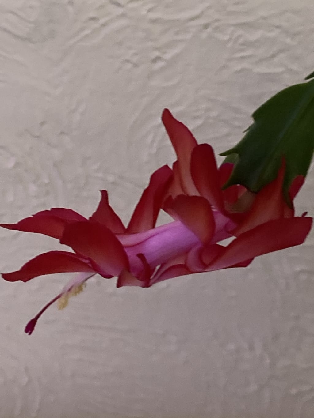 Last year, I bought a Christmas cactus in flower. It survived the whole year and in November I noticed little pink buds and was hopeful for flowers. I have never had any luck with plants re-flowering even if they do well otherwise. Only one of these buds bloomed into a flower. But it is a really impressive flower — one I will remember for years to come.