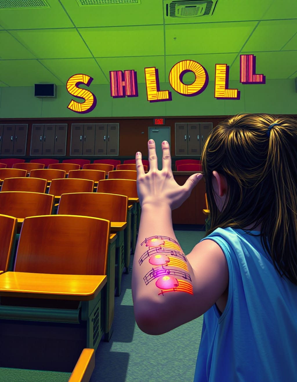 By the time I wiped the blood off the blackboard for the third time, Lisa's pen had pierced three answer sheets. This eighth grader, who has won the spelling championship for four consecutive years, is now repeatedly drawing some non-Euclidean figures on the table with her left index finger. Barcode-like bruises appear under the skin of her right arm, changing the code synchronously with the flickering lights on the auditorium.