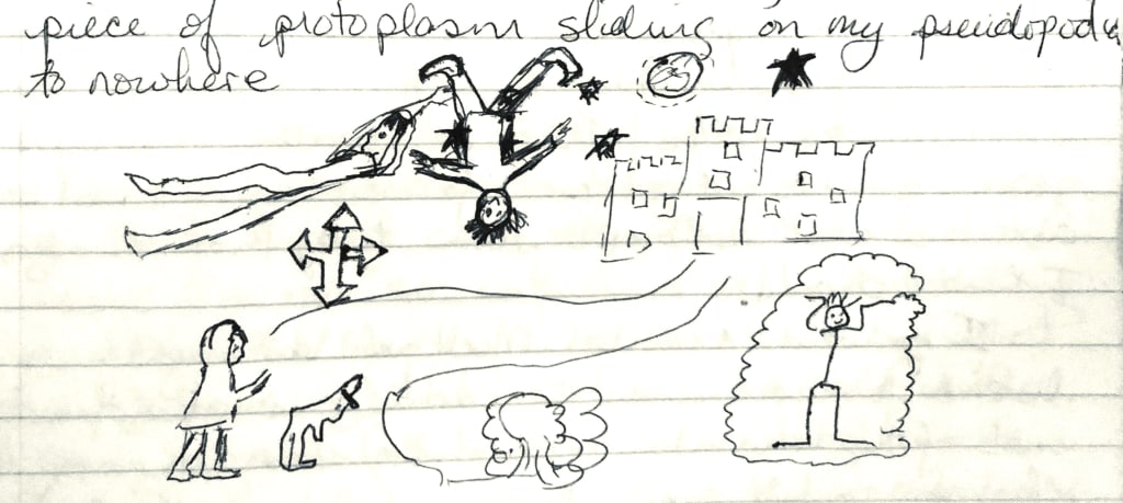 Such a response to my ideas made me turn to writing. It was my way of putting down my thoughts, without being considered confrontational, or being laughed at. I pursued putting down my thoughts and images in journals that I have kept over the years, Strangely, I seem to know how to find what I wrote over 50 years ago. This is what I consider my first story, written around age 16, after I had recently learned about paramecium, single celled life forms. In my mind’s eye, I saw how more complex life began.