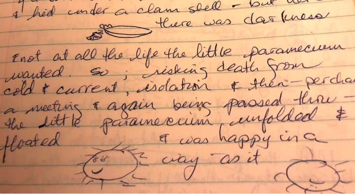 Deeply informative and I love the notebooks themselves, fun.piecing out the story and seeing the doodles in the photos. Such adorable paramecia "throughout the land or liquid or gas it lived in." Great work.