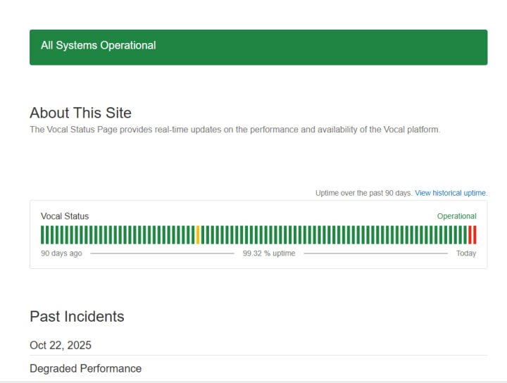 Thank you for that, Vocal. The Status Site is showing the state of play as well. You should bookmark this, as it was working during the downtime: