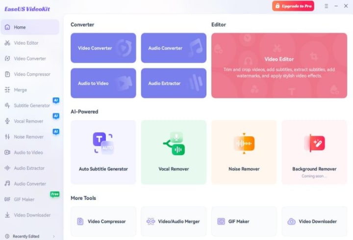 EaseUS Video Converter is a powerful video conversion and editing software that supports conversion, downloading, and editing of video, audio, and GIF formats for one-stop processing. It is compatible with more than 1000 formats (e.g., MP4, FLAC, MKV, AVI, MP3, etc.) and offers many useful features such as HD and 4K video conversion, batch processing, and GPU acceleration (paid features).