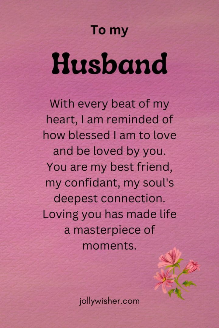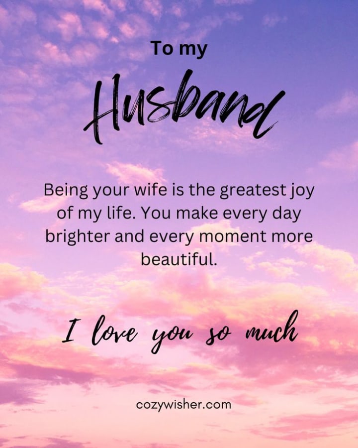 - "You are the smile to my mornings and the peace to my nights. I couldn’t ask for a better husband."