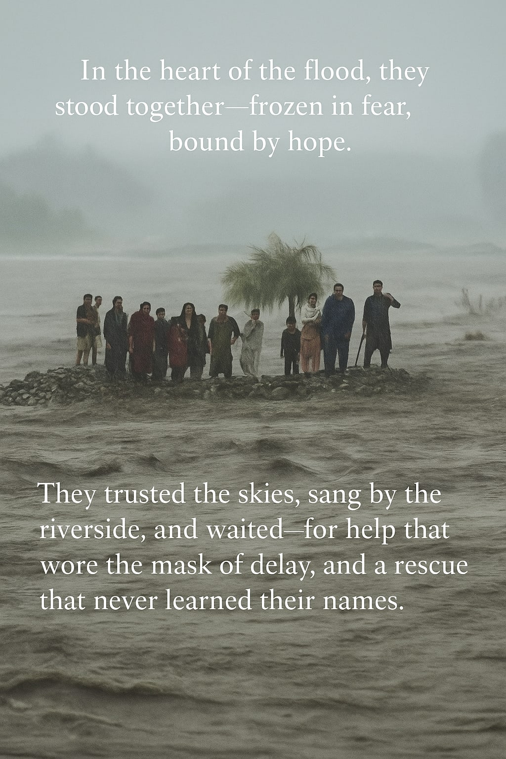 It was supposed to be a day of joy. The Kareem family—fifteen members, spanning three generations—had set out early that morning for a picnic near the riverbank. Children laughed as they chased each other through the tall grass, elders sipped tea under the shade of a tree, and parents smiled at the rare peace that life seldom offered. No one suspected that the sky above, gray and quiet, was holding back a storm that would soon rewrite their fate. By late afternoon, the winds began to howl. The river, once calm and silver, turned into a roaring beast. Water rushed in with a fury no one had predicted—certainly not the underfunded local weather office, which had failed to issue a proper warning. Within an hour, their picnic spot became an island of stone, surrounded by waves that clawed at their feet like hands desperate to pull them under. They called for help. Again and again. Phones rang unanswered. Emergency lines were jammed. The state’s disaster response team, crippled by poor coordination and a lack of resources, couldn’t even locate them on the map. Officials sat behind desks, watching weather reports with mild concern while lives were slipping beneath water. Night fell. The children cried themselves to sleep in the arms of their parents. Hope faded with every crashing wave. By morning, the river had swallowed the island whole. No bodies were found. No rescue ever came. Just silence. They did not die because nature was cruel. They died because the system was blind.